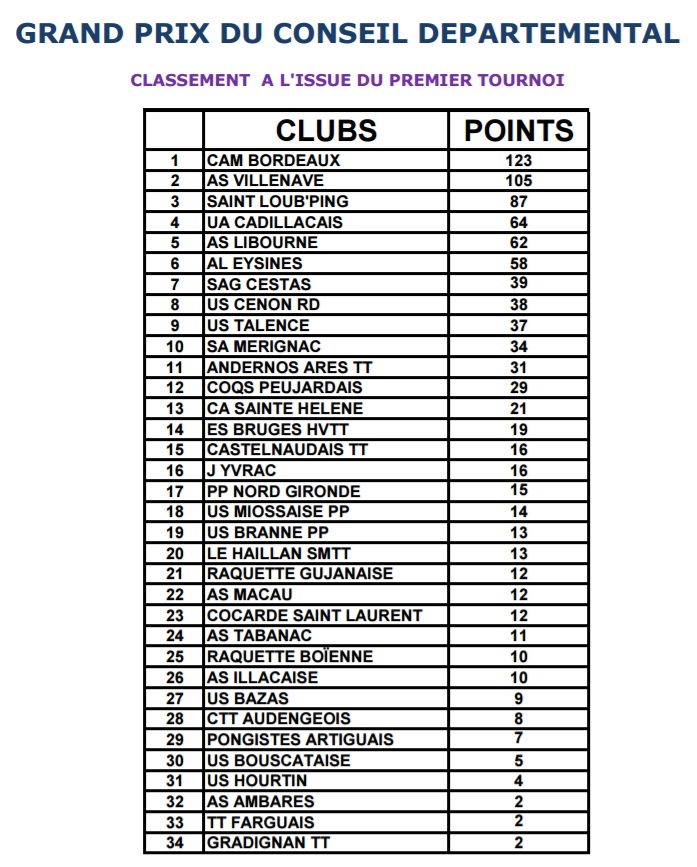 A l’issue de ce premier tour, Villenave occupe la seconde place provisoire du classement. L’objectif de l’année est de terminer le challenge dans les 3 premiers clubs du département, les espoirs sont donc permis !