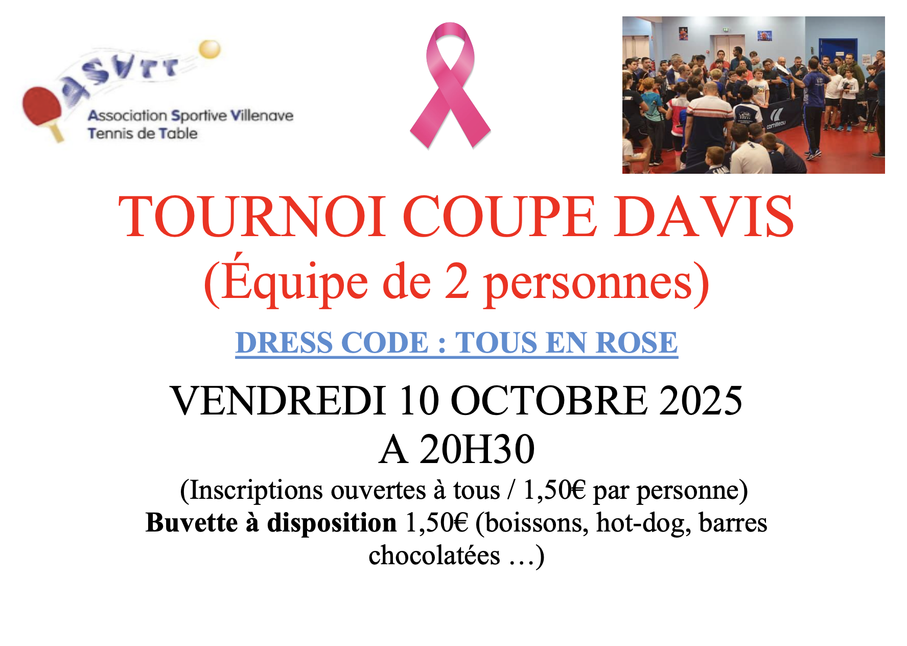 Nous voici à moins de 1 mois de notre première soirée à thème de la saison 2025/2026 : la soirée coupe Davis placée sous l’effigie d’Octobre Rose
