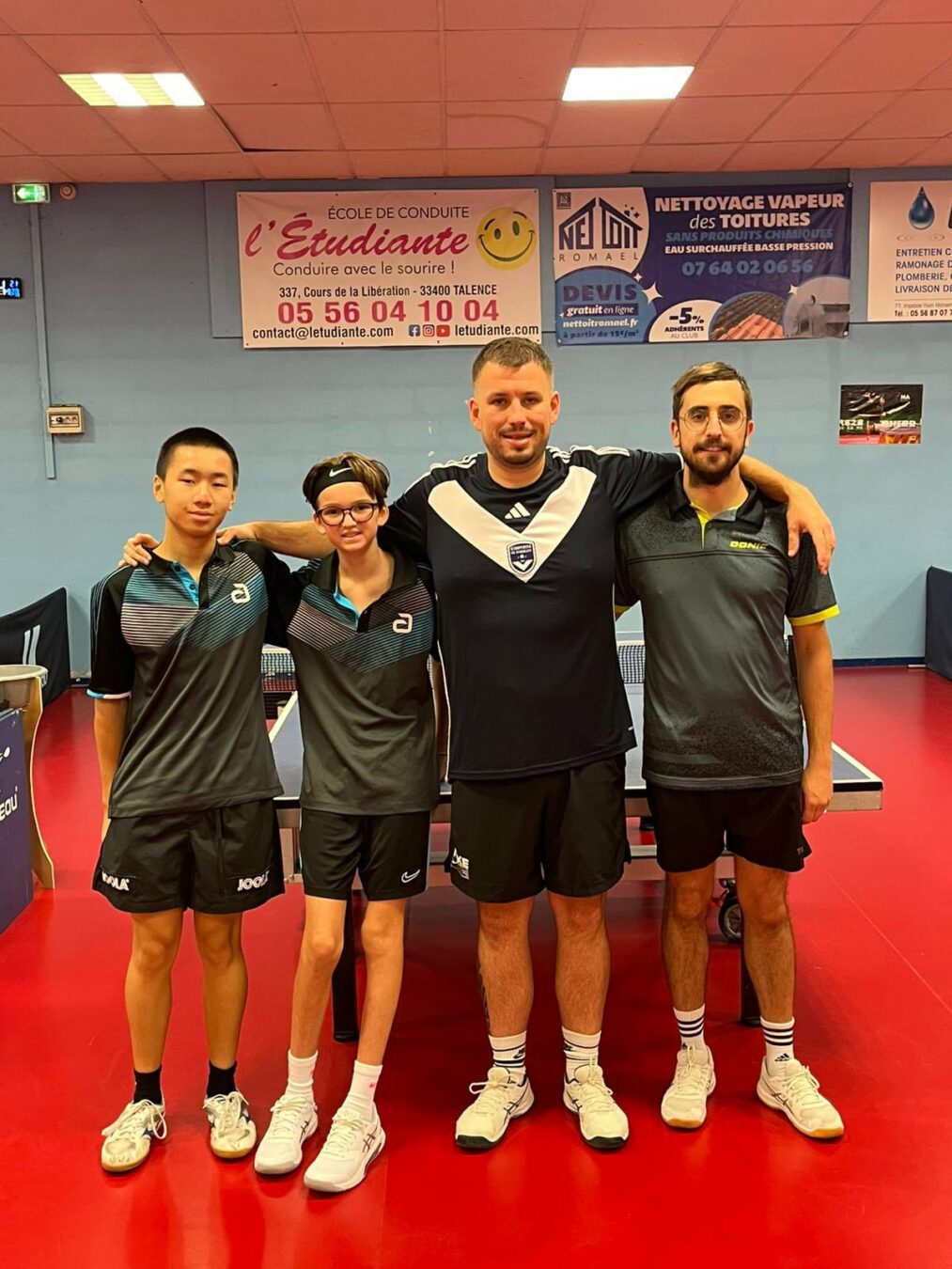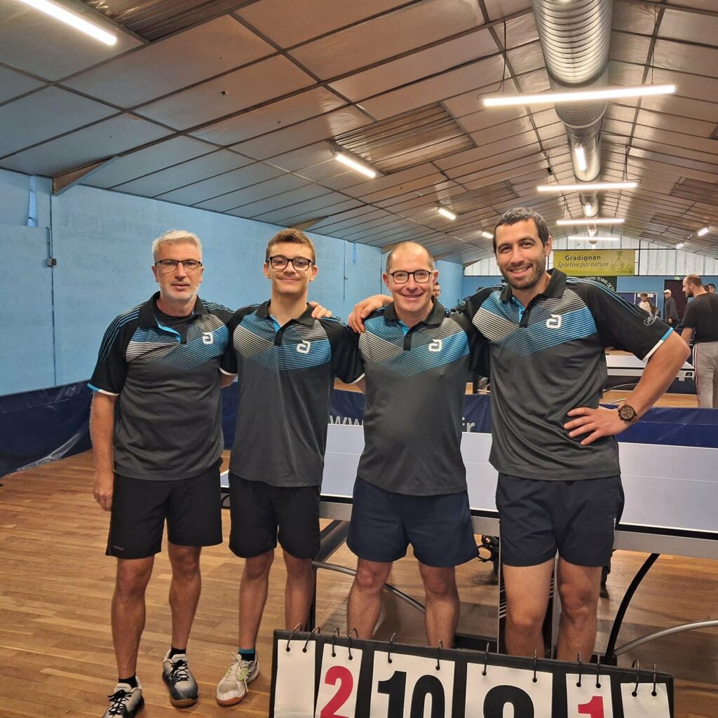 ✅ Départemental 2 : ASVTT 13 gagne 10/4 contre Gradignan 4. L’équipe 13 se déplaçait à Gradignan. Face à une équipe gradignanaise assez homogène, nous prenions rapidement l’avantage 5-1 puis 5-3 avant les doubles. Les 2 doubles gagnés nous permettaient de mener 7-3 avant la dernière rotation. Au final, victoire de l’équipe 10-4. Loïc (3 + le double), Robin (2 + le double), Lucas (2 + le double) et Fabrice (1 + le double). Merci à nos supporters et supportrices, Cyril, Gaëlle et Karine, d’être venus nous encourager. Prochaine journée contre Langon.