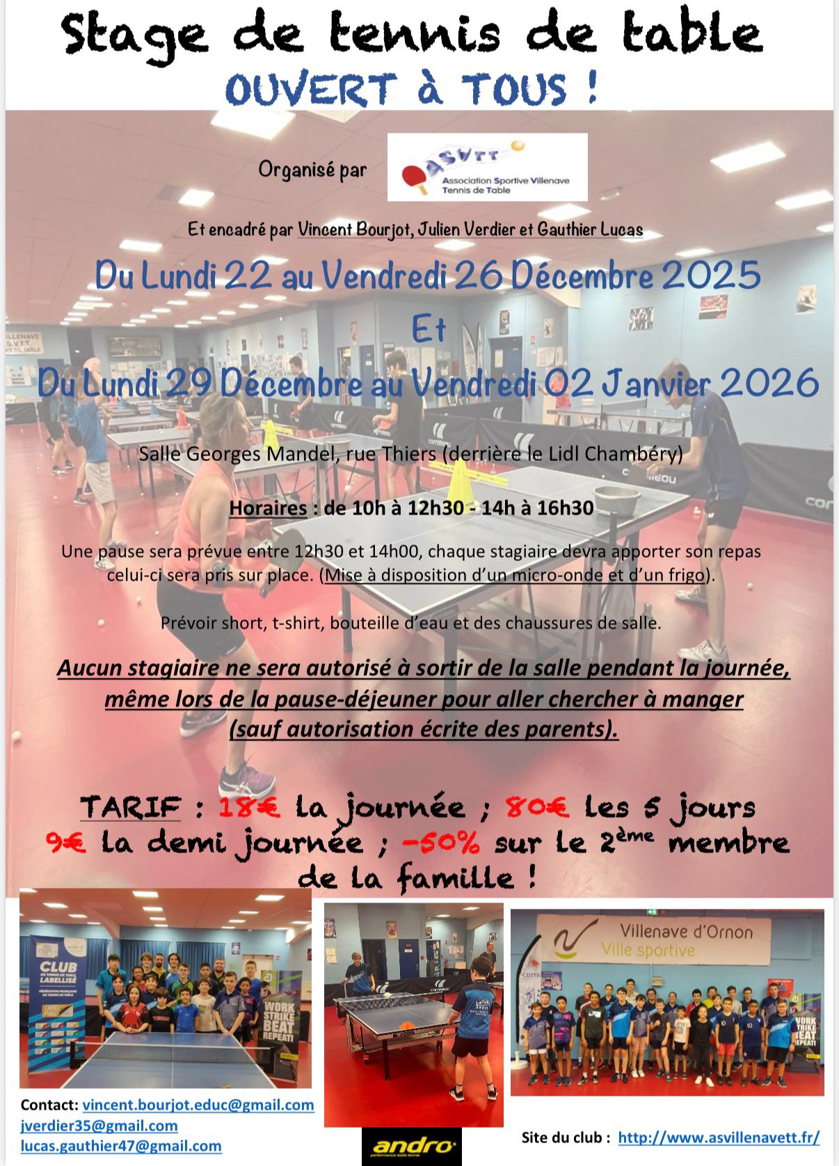 L’ASVTT vous propose deux semaines de stages pendant ces vacances pour que vous puissiez continuer à pratiquer votre sport préféré dans une ambiance conviviale et dynamique. 💥