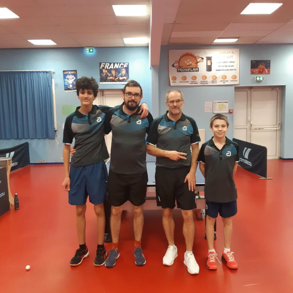 ✅ Départemental 2 : ASVTT 13 gagne 13/1 contre Saint Jean D’Illac 2. Assurée de finir 1ère de poule, l’équipe 13 se déplaçait, sans pression, contre les derniers St Jean d’Illac. La victoire s’est rapidement dessinée et au final l’équipe l’emporte 13-1. Lucas et Robin font carton plein, Fabrice et Jérôme laissent le double à nos sympathiques adversaires du jour. Montée en D1 pour la 13. Bravo à tous.