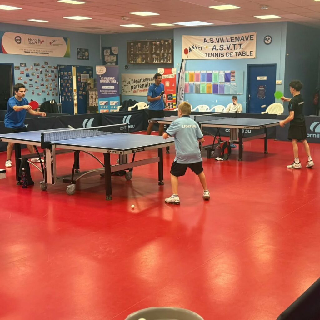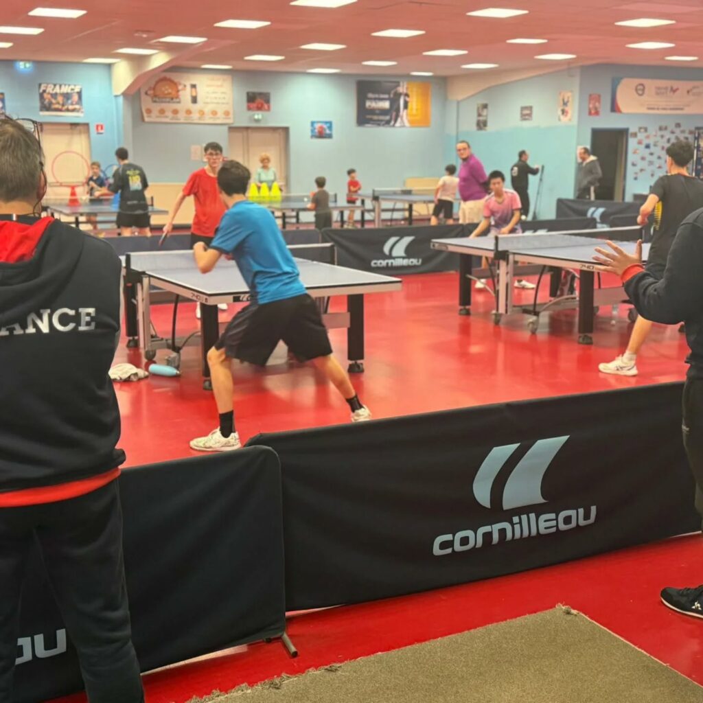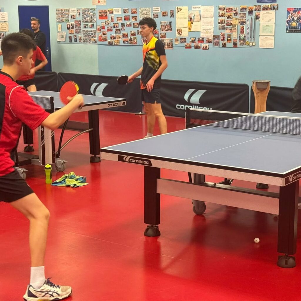 Nous avons eu la chance d’avoir la venue du pôle France handicap tennis de table mardi matin et mercredi matin, avec l’aide à l’encadrement de Florian Raillard, Guillaume Jean et Claude Bard.