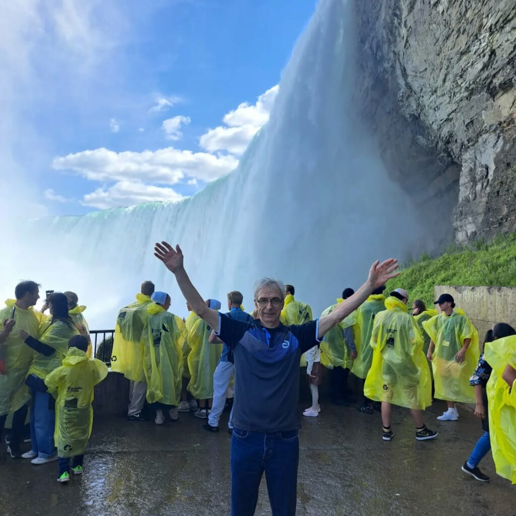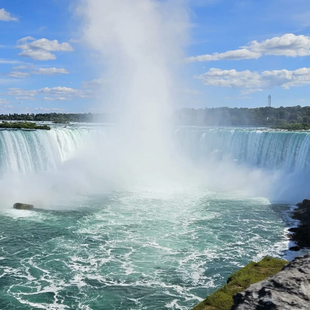 Chutes du Niagara 🌊 pour s’en mettre plein la vue, puis détour à Montréal au Québec devant le bâtiment symbole de la ville. 🏙️